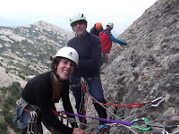Después ya empleamos toda la tarde para maniobrar en las vías de tres largos con sus correspondientes cambios de primeros de cordada y el descenso en tres rápeles para que adquirieran familiaridad con estas maniobras.