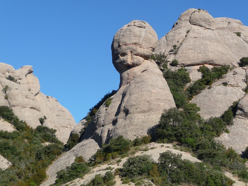 Subimos hacia el Monestir y ya apreciamos que la temperatura era bastante más agradable, Aparcamos al sol para poder equiparnos cómodamente y ya nos dirigimos hacia el Funicular de Sant Joan,en el que rápidamente aparecieron numerosos turistas que también querían subir hacia Sant Joan. Cuando estábamos a unos 100 metros de la estación superior, sucedió algo sorprendente; el funicular se paró de golpe y rápidamente la conductora (que no tiene habitáculo que la aísle de los usuarios) pregunta por el interfono si había algún problema y oímos perfectamente como le contestaban que era un error que ya había surgido días antes. No quiero ni imaginar si la respuesta hubiera sido afirmativa, de que sí, había problemas... Por suerte la gran mayoría de ocupantes eran 'guiris' y no se enteraron de las conversaciones.