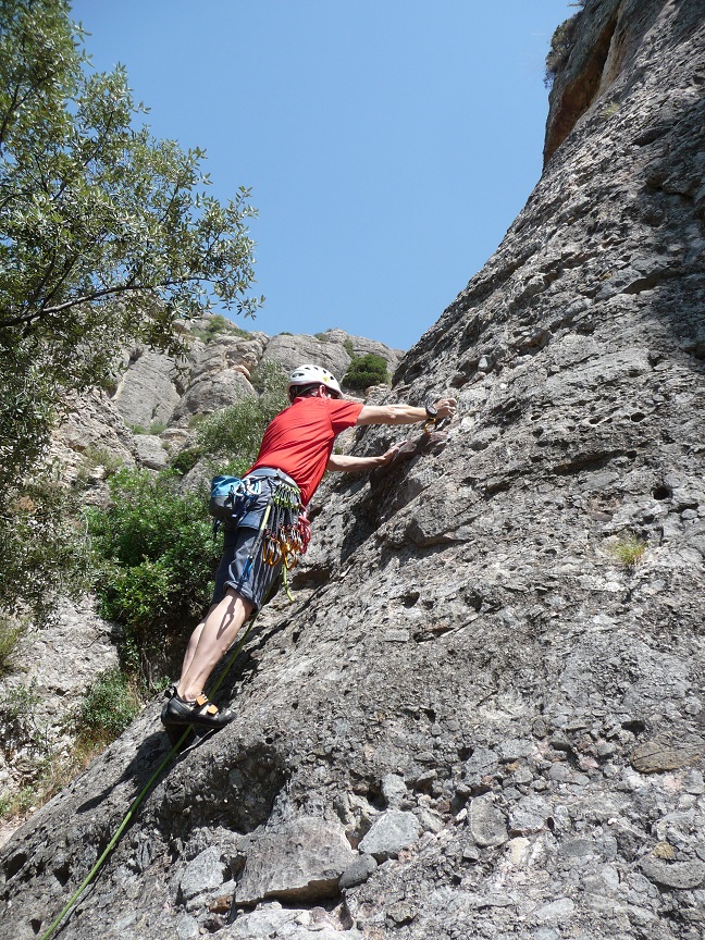 La calor apretaba así que ya vimos claro que tendríamos margen para escalar hasta que el sol nos tocase. De la última visita ya recordaba que el estado actual de las vías con muchísimas repeticiones desde que se abrieron por Joan Vidal en el 2008 y a las que a los pocos meses ya tuvimos la oportunidad de escalar, claro que en aquel momento con una roca en perfecto estado, cosa que ahora desgraciadamente ha convertido, sobre todos las vías más fáciles, en algo que puede servir más para desmotivar si se lleva a alguien que esté comenzando, y que puedan llegar a pensar que si los 'IVº' son tan difíciles, será mejor dedicarse a otra cosa...