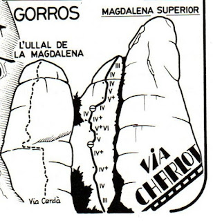Este miércoles habíamos hablado con Jordi Clop de escalar algo por el Alt Urgell, pero al final hubo que cambiar de planes y propuso ir a escalar en la Magdalena Superior la vía Charlot, que yo sólo había escalado en una ocasión con Josep Emili Ferrer en fecha 11/9/91. Al ser Gorros una zona en la que he escalado muchas veces, me hizo sospechar algo por el que no la hubiese vuelto a escalar.